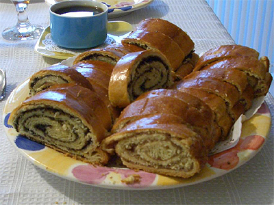 | 15)オーブン190度で30分焼いてできあがり。 リズにドウにラズベリージャム塗ってもおいしそうじゃない?ときいたら「ノーノー。コーラーチはアーモンドかポピーシードなのよ」とのことでした。とはいえピーナッツバターも美味しそうだし、ごまも美味しそうだし☆☆ 企画: Niki's Kitchen |