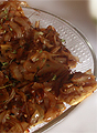 小麦粉をベースに薄い生地を作り、焼き、その上にバルサミコで香り漬けをしたタマネギ をのせて ローストします 。イタリアンピザのような軽い食感が絶妙