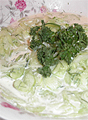 きゅうりの皮を全てむくことにより、青臭さが消え、優しい味に変わります。サワークリーム、フレッシュディル、ビネガー、砂糖、塩胡椒で香りよくあえたサラダです