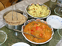 ロティが冷めないように入れる専用のケース。インドの人の日常の食卓。 |