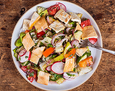 ファトーシュは爽やかな酸味のスパイス、スーマックを使用したアラビアの有名なサラダです。