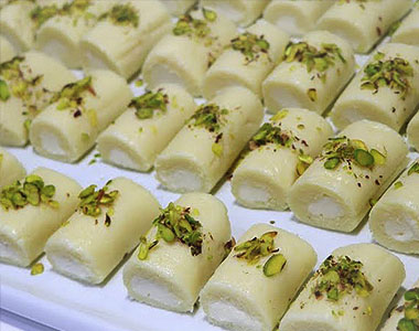 アラビアの魅惑的なデザートから1つ今回も学びます。シリア中部ハマ地区のお菓子です。柔らかく甘いチーズクリームが詰められています。
