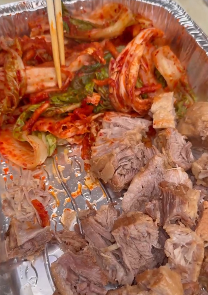 ボッサムは茹で豚をキムチやヤンニョムと共にで包んで食べるキムジャンに欠かせない食事です。写真は昨年の様子です。