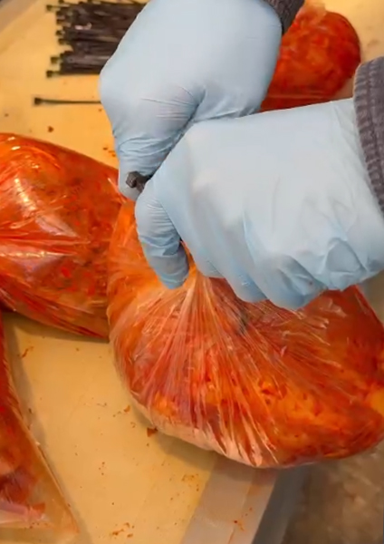 韓人会さんが自信をもって集めたキムチづくりのための韓国産高級コチュカルなど厳選材料を使い美味しいキムチを漬けこみます。
