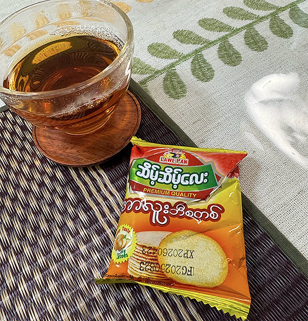 しっとりとした甘さが濃いお茶とよく合い、ミャンマーのティータイムには欠かせない存在。
