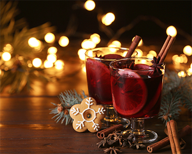クリスマスシーズン定番のドリンク、ホットワイン(グリューワイン)で乾杯!香辛料のきいたあたたかいワインでじんわりと体が温まってきたら、さあクッキー作りのはじまりです。