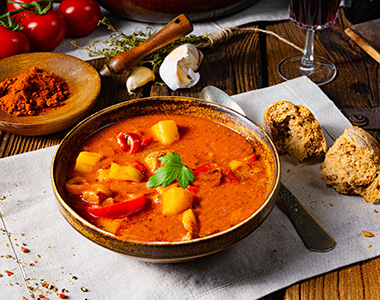 心温まる冬の一皿、ポテトグヤーシュ。ホクホクのポテトとジューシーなソーセージが絶妙に絡み合い、優しい味わいが体を包み込みます。甘いクッキーとは対照的な、ほっとする一品です。