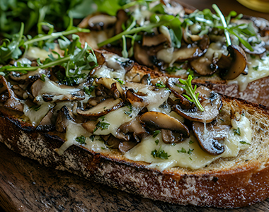 香ばしく焼いたパンに、ほうれん草やきのこを合わせ、仕上げにハチミツをひとしずく。