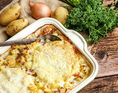 サヴォワ地方はイタリア、トリノに近いアルプスに抱かれた土地。山岳酪農が盛んで、厳しい寒さの中、じゃがいもや玉ねぎ、保存肉のベーコンが主食を支えました。そこに加わるのが、柔らかくクリーミーなリブロション。農家の人々が自家製チーズを温かい料理に取り入れ、山の恵みを余すことなく楽しんできた歴史があります。タルティフレットは、雪深い土地の暮らしが生んだ「体も心も温まる料理」なのです。