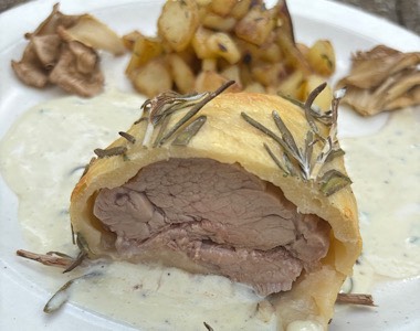 ハーブとオリーブオイルでマリネした豚フィレを塩と小麦粉の生地で包み込み、オーブンでじっくり焼き上げます。塩の殻が旨みを閉じ込め、肉はしっとりとジューシーに。仕上げにクリーミーなマスタードソースを合わせた、フランス伝統の豪華なメインディッシュです。