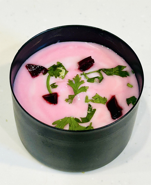 ヨーグルトの優しい酸味とビーツの深紅がルビーのように輝き、食後の体を内側から整えます。
