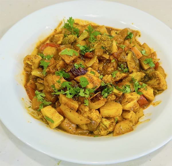 炒め合わせた北インドの家庭料理です。おうつでつくれるようスパイスミックスをお持ち帰りいただけます。