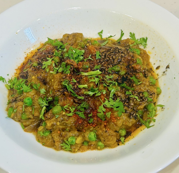 「バイガン・バルタ(Baingan Bharta)」は、炭火で焼いたナスを香ばしくつぶし、