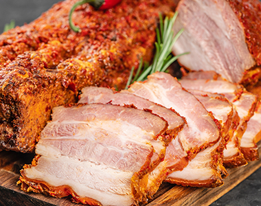 ●スペイン・ハーブで燻製した豚バラ肉 (Panceta de Cerdo Ahumado con Romero)