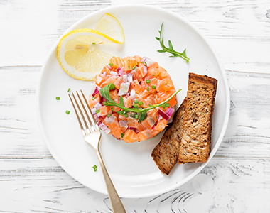 Greek Style Salmon Tartar with dill, cucumber and Feta