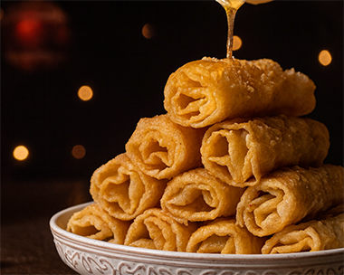 クリスマスが近づくと、キラキラ輝くデコレーションとともに、イルミネーションのようにハチミツが輝く「ディプレス」が山積みになってパティスリーの店頭を飾ります。ちょっとしたコツのいるこのスイーツ。折りたたむような作り方から「ディプレス」と名づけられたと言われます。ギリシャのクリスマスに欠かせないスイーツで締めくくりましょう。