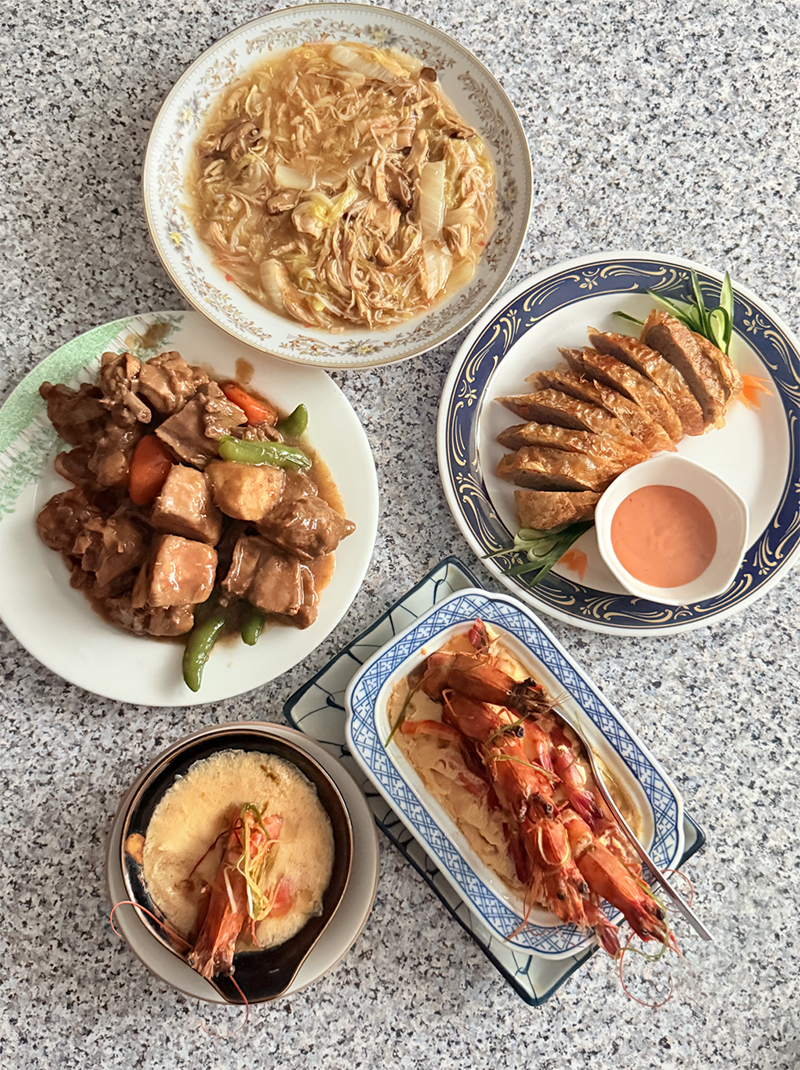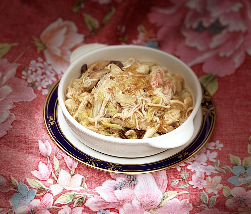 弱火でじっくり煮含める「煨」という調理法で、白菜がとろりとするまで煮込みます。鶏や貝柱、干し椎茸の旨味が溶け合い、寒い季節に心身を温めてくれる一皿。台湾の田舎では正月料理として親しまています。