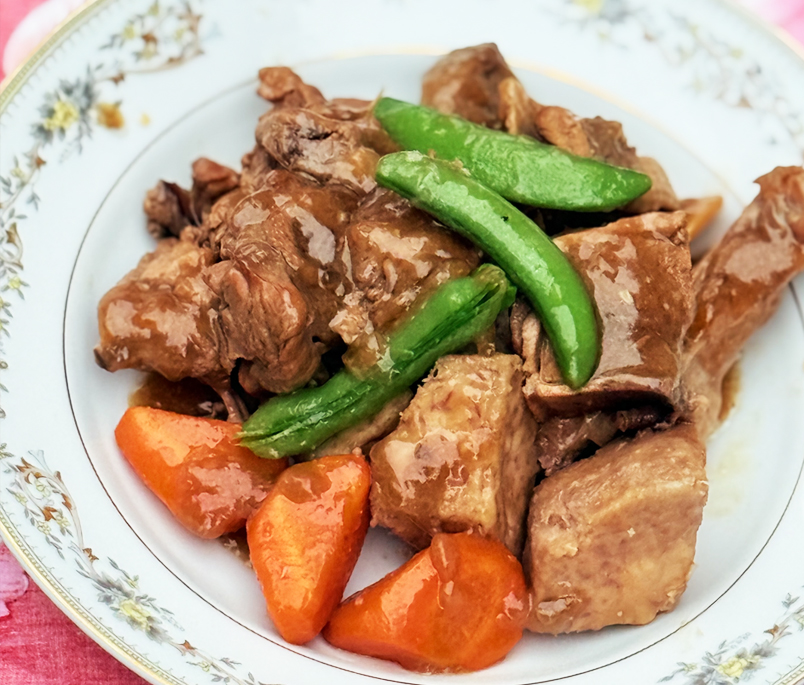 タロイモは地下で親芋から子芋・孫芋が密に連なりながら育つため、「家族が代々繁栄し、しっかり根を張る」という意味を持ち、家の安定と繁栄を象徴する食材。 一方、あひるは水辺で群れを作り暮らす姿が家族の調和やつながりを表す縁起物とされています。そして料理名に入る「燜」は、蓋をしてじっくり煮込む調理法。煮崩れないようにタロイモを素揚げし、あひるとともに醤油とオイスターソースでコトコトじっくり煮込んだ『香芋燜鴨塊』は「繁栄と団結」の願いを込めた、新年にぴったりのお料理です。<写真は1名様分のお料理となります>