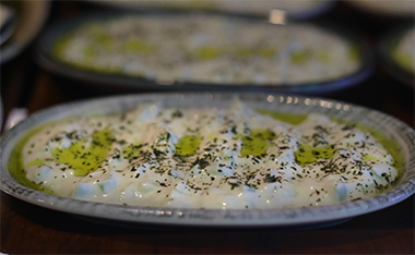 さわやかななヨーグルトとハーブのディップです。野菜のディップをトルコではエズメと呼びますが、 ヨーグルトのディップをジャージュクと分けて呼びます。こちらもエズメ同様いろいろな種類があります。今回はハーブを用いています。