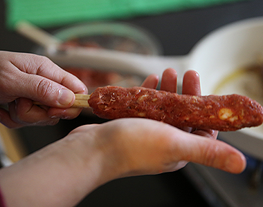今回のクラスでは、この本格的なアダナケバブを フライパンで手軽に再現。