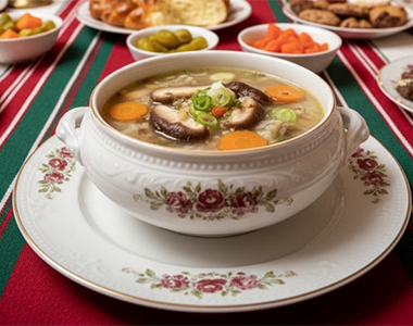 香ばしいそばの実と、うま味たっぷりのきのこをじっくりと煮込んだ冬の定番スープ。