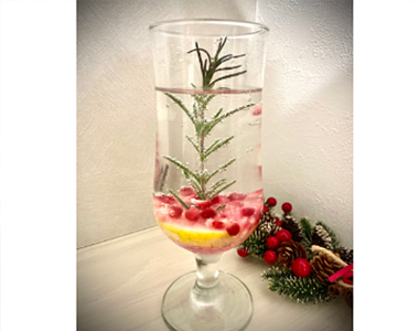 nezna kugla koktel- Snowglobe cocktails 2 types offered one with champagne or non- alcoholic with sparkling water