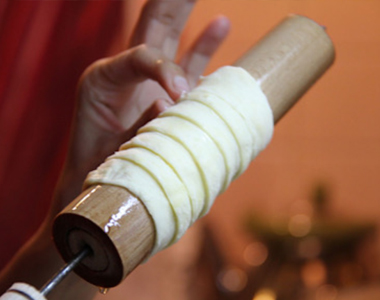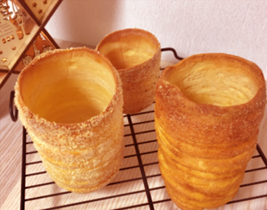 名前の由来は、もともと“煙突のパイプ”に生地を巻きつけて焼いたことから。