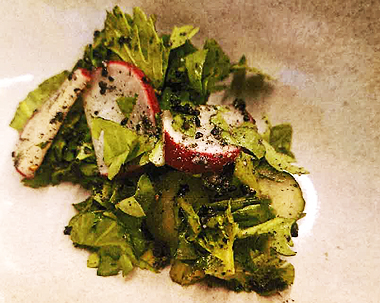 今年は春菊と赤かぶのサラダ 干し椎茸のバタースプレッド 松前づけ