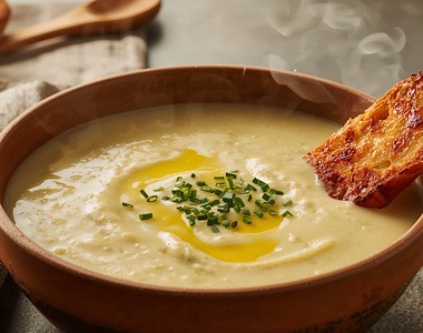 このスープは、まろやかで温かい味わいが特徴です。新鮮なポワロ(リーキ)の風味が、クリーミーでリッチなチーズと絶妙に絡み合い、深いコクを生み出します。口に広がるやさしい味わいが、寒い日にもぴったりの心温まる一杯です。ポワロの甘みとチーズの塩気が調和し、食べるたびに幸せな気分になります。ほんのりとしたバター風味と、クリームの滑らかさが加わり、まるで贅沢なひとときを楽しむかのような味わいです。