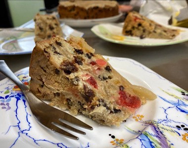 そして、イースターを祝うための一番有名な伝統的なケーキがシムネル・ケーキです。これは表面をマジパンで覆ったライトなフルートケーキで、ケーキの上を11個のマジパンの玉で飾ります。イエスには12人の親しい弟子がいましたが、その一人が裏切り者でした。そのため、ケーキの上には11個の玉しか飾られていないのです。