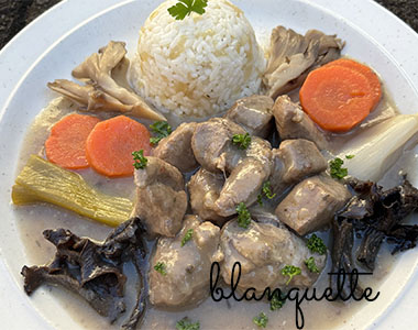 BLANQUETTE DE PORC AUX TROMPETTES PILAFF RICE