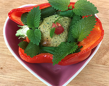 日本人の大好きなブルーチーズを使って伝統的なスフレをパプリカの器に入れてモダンに作りあげます。青カビのチーズをベースに作り上げたメレンゲはオーブンで焼いている間にふんわりと膨らんでいきます。スフレは冷めてくるとしぼんでしまいます。焼きたて熱々をいただきましょう!