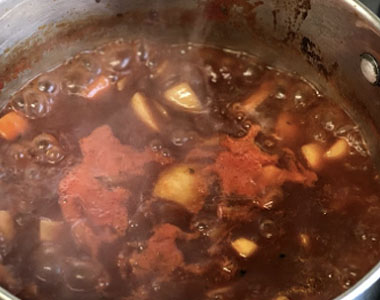 マトンは骨付きを使用することで肉のうまみだけでなく骨から出るコラーゲンや旨味が染み出し味に深みが加わります。使用する根菜ルイは霜との野菜を使います。