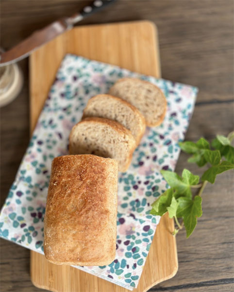 シチューと一緒に頂くのはアイバンの大好きなスペルト小麦を使ったパンです。古代小麦のスペルトは私たちはスコーンにも使っている小麦粉です。古代小麦とは現在市販されている小麦の祖先のこと。品種改良されておらず 全粒粉で栄養価が高いのが特徴。僅かに ナッツのようなフレーバーと酸味が楽しめる小麦となります。