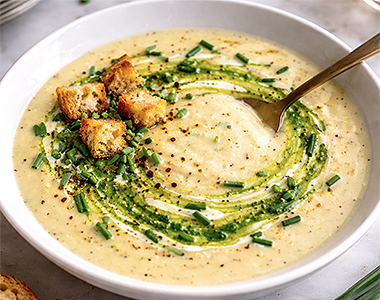 寒さが増すごとに甘さを増すネギの優しい甘さに、心から温まる冬のスープ。ジャガイモのトロリとした優しさに柔らかく包まれるコンフォートフードです。