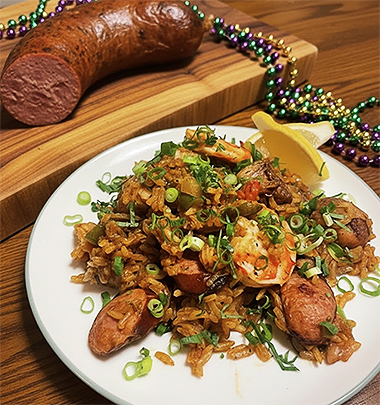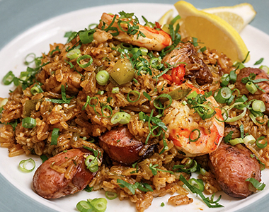 「アメリカ版パエリア」とも呼ばれる、ルイジアナの誇り。鶏の旨み、海老の甘み、そして複雑なスパイスが米一粒一粒に染み渡ります。味の決め手は、私がじっくり燻製して仕上げる自家製アンドゥイエットソーセージ。