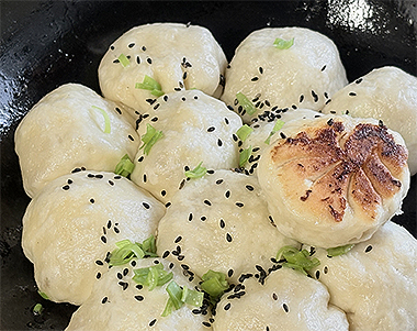 軽く発酵させた手ごね生地で作る、老上海スタイルの焼き小籠包。