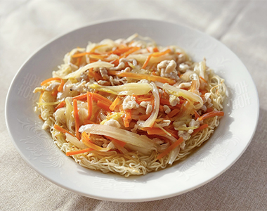 両面をこんがり焼いた麺に、豚肉と旬の野菜を合わせた、とろみのある餡をかける上海麺。焼いた麺の香ばしさと、野菜のやさしい甘みが合わさり、満足感がありながら重くなりすぎないのが特徴です。