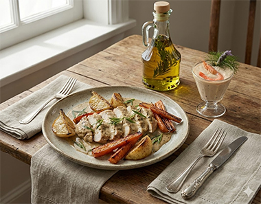 フランスの自家製ハーブオイルは、特別な高級調味料というより、家庭の台所にある“小さな魔法”のような存在です。庭や市場で手に入るフレッシュハーブをオイルに漬け込み、季節の香りを瓶の中に閉じ込める。春から夏にかけてハーブが一気に育つ時期、使い切れないほどの香りを無駄にしないために生まれた知恵でもあります。中でもタラゴンは、ふわりと甘く爽やかな香りが特徴で、鶏肉や白ワイン、クリームと相性抜群。ひとさじ加えるだけで料理がぐっとフランスらしく整い、いつもの食卓が軽やかに華やぎます。春の香りを楽しむ一滴を、ぜひ味わってください。