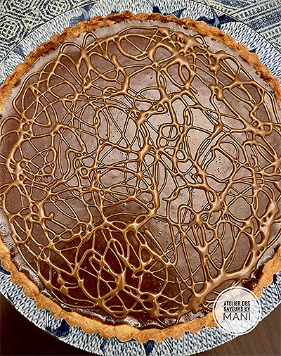 仕上げには、表面に幾何学的なラインを描き、モダンな表情をプラスしました。まるでアートのようなその姿は、切り分けるのが惜しくなるほど。 濃厚でありながら後味は切れが良く、コーヒーや紅茶はもちろん、赤ワインの複雑な香りとも寄り添い、優雅なマリアージュを奏でます。甘いものが苦手な方にもぜひ召し上がっていただきたい、大人のためのデセールです。