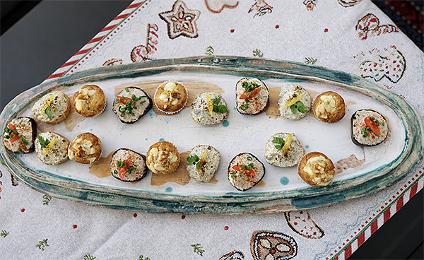 写真は12/1月のクラスのものです。(チョコレートのバケットに鴨のコンフィ。海藻バケットにメカジキとわかめ。胡桃のマフィンにブリーチーズの3種)