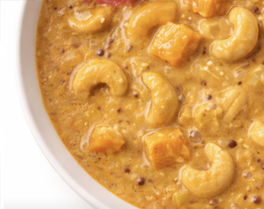 スパイスの香りがじんわりと絡みつく。カシューナッツにスパイスの輪郭がはっきりと際立ち、軽やかながらも奥深い味わいに仕上がる。深い味わいのカレーをぜひ体験してください