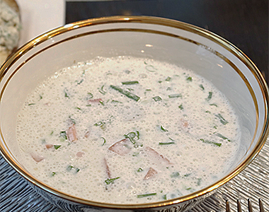 さっぱりした時のいただくウズベキスタンで親しまれている伝統的な「アイロン」。 水切りヨーグルトにハーブや塩を加えてさっぱりと仕上げました。体の熱をやさしく冷まし、食欲をそそる効果もあります。 ウ