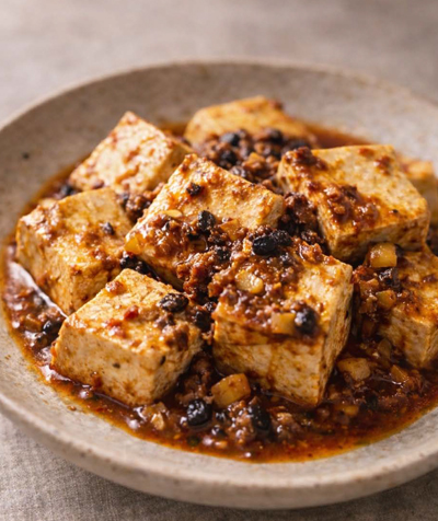 この一皿も、そんな優しさの中に深い奥行きを秘めた、どこか懐かしい味わいです。 香ばしく焼き色をつけたお豆腐に、じっくりと炒めて引き出した野菜の甘み、そして発酵調味料のふくよかなコクを丁寧に重ねました。