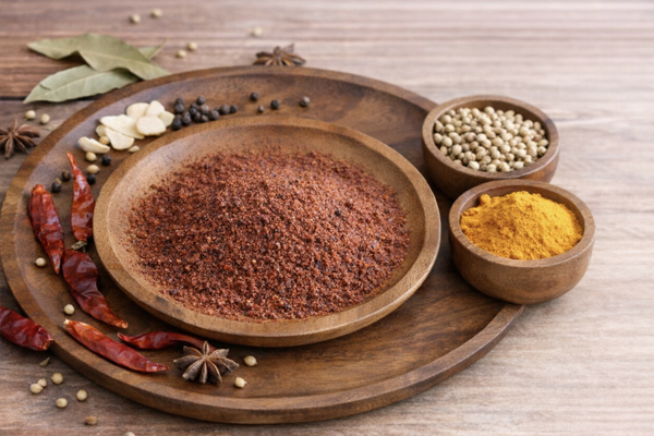アラビア語で「店の看板(店主の最高傑作)」を意味する、モロッコなどの北アフリカを象徴するミックススパイスです。クミン、コリアンダー、カルダモン、シナモン……ときには数十種類ものスパイスを調合したこのエキゾチックな香りが、お料理に奥行きのある立体感を与えてくれます。