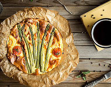 Entrée Clafoutis Salé d'Asperges Vertes et de Tomates