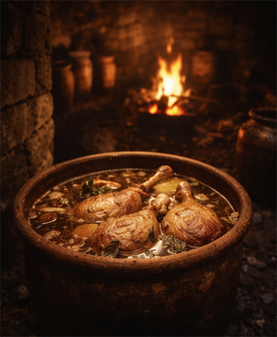 そして、焼き上げた肉を石造りの壺「グレ」に収め、たっぷりの脂で封じ込めて地下室の暗がりに置く。空気を遮断された肉は、琥珀色の脂の中で深い眠りにつき、厳しい冬を越すための貴重な蓄えとなりました。