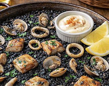 メカジキの黒いパエリア(アロス・ネグロ) アイオリソース添え
