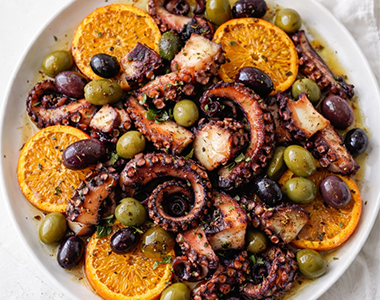 Tender Octopus with Oranges & Greek Olives