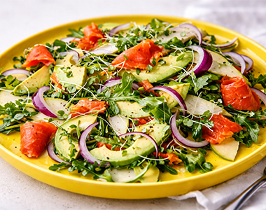 Salmon, Arugula & Avocado Salad with Maple-Lime Dressing